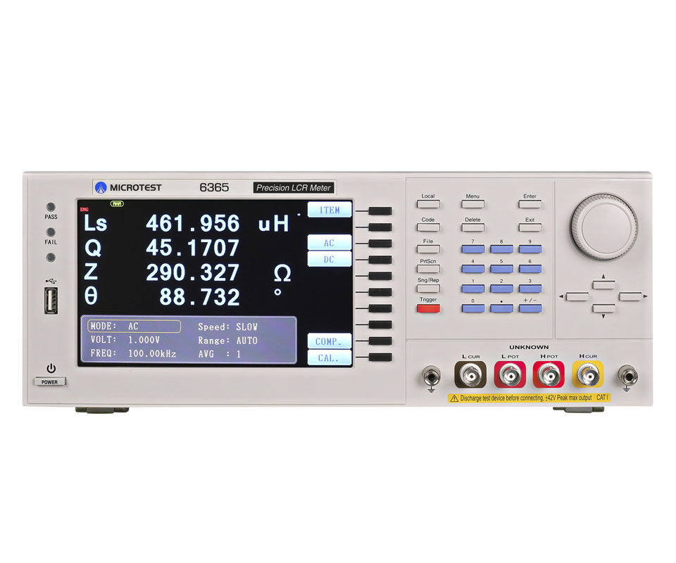 6363經(jīng)濟(jì)型 LCR 電橋具備高精確度、速度,且經(jīng)濟(jì)型多功能,測(cè)試頻率范圍從10Hz~20kHz。基本精確度±0.05%,螢?zāi)划嬅婵梢酝瑫r(shí)顯示四個(gè)參數(shù)。具多步列表功能,最多可以設(shè)定8組。低頻率6365A(0.1Hz~200kHz)可量測(cè)容量大的鋁電解電容。支援USB Host、RS-232、GPIB、Handler、LAN等介面??蛇x購(gòu)電腦連線軟體進(jìn)行圖形繪圖分析。適用于生產(chǎn)制造、品?;蜻M(jìn)料檢驗(yàn)或自動(dòng)化檢測(cè)部門。