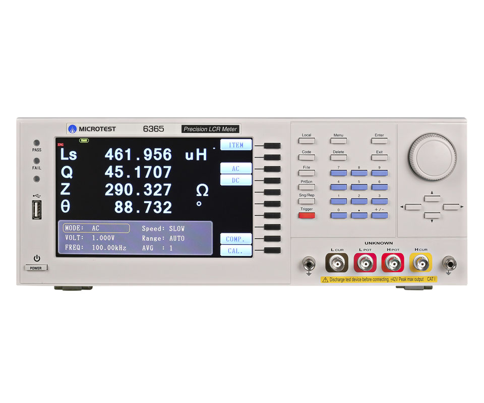 6365經(jīng)濟(jì)型 LCR 電橋具備高精確度、速度,且經(jīng)濟(jì)型多功能,測(cè)試頻率范圍從10Hz~200kHz?;揪_度±0.05%,螢?zāi)划?huà)面可以同時(shí)顯示四個(gè)參數(shù)。具多步列表功能,最多可以設(shè)定8組。低頻率6365A (0.1Hz~200kHz)可量測(cè)容量大的鋁電解電容。支援USB Host、RS-232、GPIB、Handler、LAN等介面??蛇x購(gòu)電腦連線軟體進(jìn)行圖形繪圖分析。適用于生產(chǎn)制造、品?;蜻M(jìn)料檢驗(yàn)或自動(dòng)化檢測(cè)部門(mén)。