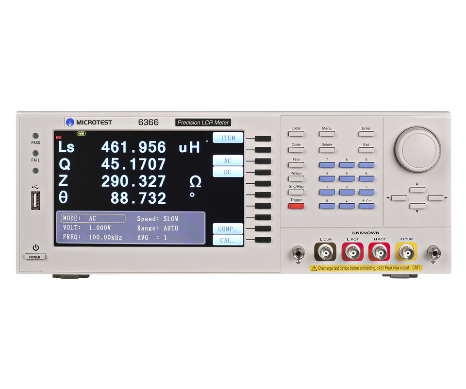 6366經(jīng)濟(jì)型 LCR 電橋具備高精確度、速度,且經(jīng)濟(jì)型多功能,測(cè)試頻率范圍從10Hz~500kHz?;揪_度±0.05%,螢?zāi)划嬅婵梢酝瑫r(shí)顯示四個(gè)參數(shù)。具多步列表功能,最多可以設(shè)定8組。低頻率6365A(0.1Hz~200kHz)可量測(cè)容量大的鋁電解電容。支援USB Host、RS-232、GPIB、Handler、LAN等介面??蛇x購電腦連線軟體進(jìn)行圖形繪圖分析。適用于生產(chǎn)制造、品?;蜻M(jìn)料檢驗(yàn)或自動(dòng)化檢測(cè)部門。